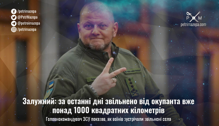 Залужний: за останні дні звільнено від окупанта вже понад 1000 квадратних кілометрів