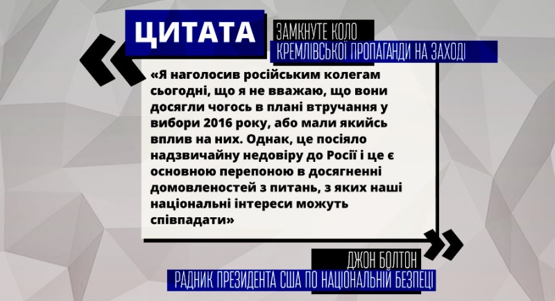 Позиція ж республіканців з цієї чутливої теми дещо інша. Так, вони готові визнати численні факти російського втручання, як у ході президентської кампанії у 2016-му, так і напередодні проміжних виборів у 2018-му. Однак, на їхнє переконання, ефективність кремлівської пропаганди була й залишається незначною. Прикладом такої позиції стали заяви радника президента США з національної безпеки США Джона Болтона на переговорах 22 жовтня у Москві. Він вкотре повторив, що втручання РФ у 2016 році не вплинуло на результат голосування. «Я наголосив російським колегам сьогодні, що я не вважаю, що вони досягли чогось у плані втручання у вибори 2016 року, або мали якийсь вплив на них, — заявив Болтон, — однак це посіяло надзвичайну недовіру до Росії і це є основною перепоною в досягненні домовленостей із питань, з яких наші національні інтереси можуть збігатися».