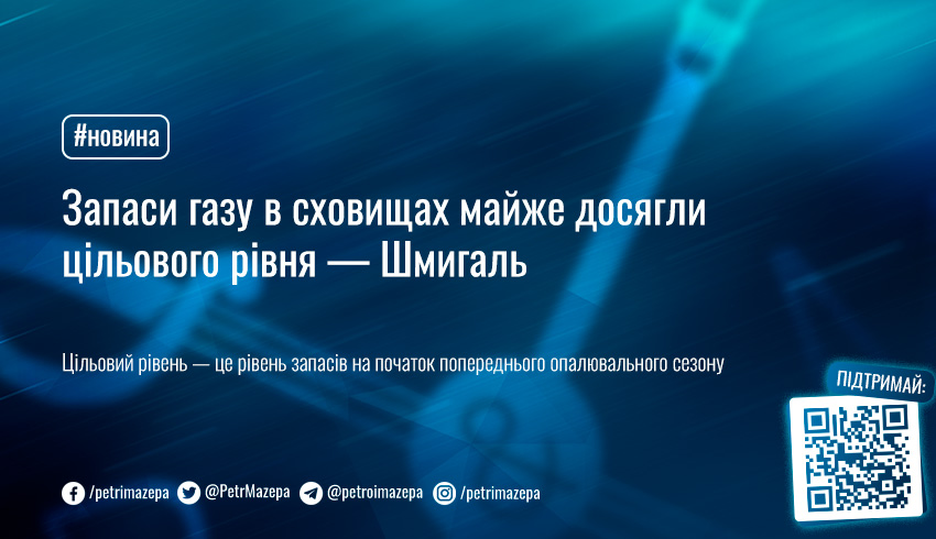 Запаси газу в сховищах майже досягли цільового рівня — Шмигаль