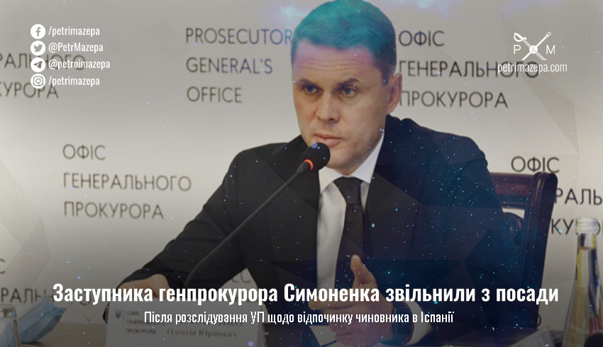 Генеральний прокурор Андрій Костін підписав наказ про звільнення з посади заступника Генерального прокурора Олексія Симоненка після розслідування УП щодо відпочинку чиновника в Іспанїі.