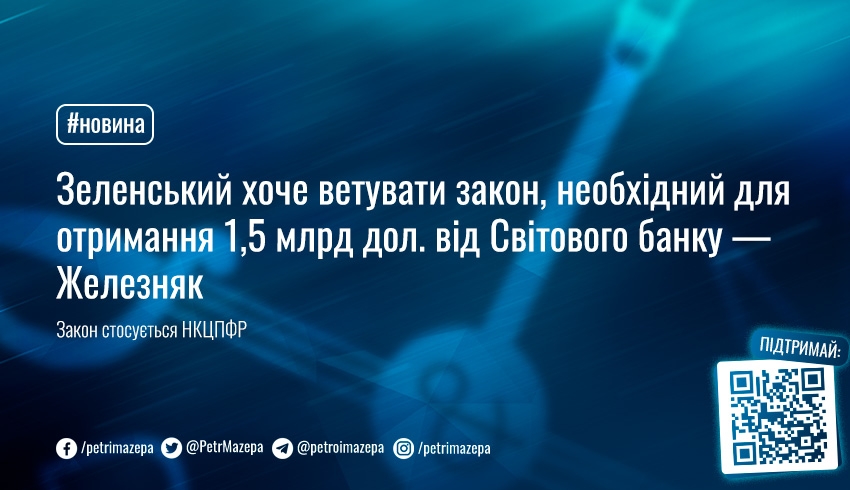 Железняк підтвердив, що цей законопроєкт є визначальним для отримання 1,5 млрд доларів від Світового банку. Тобто без нього Україна цих коштів не отримає.