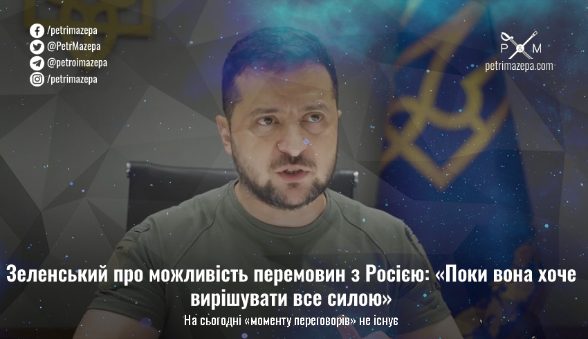 Зеленський про можливість перемовин з Росією: «Поки вона хоче вирішувати все силою»