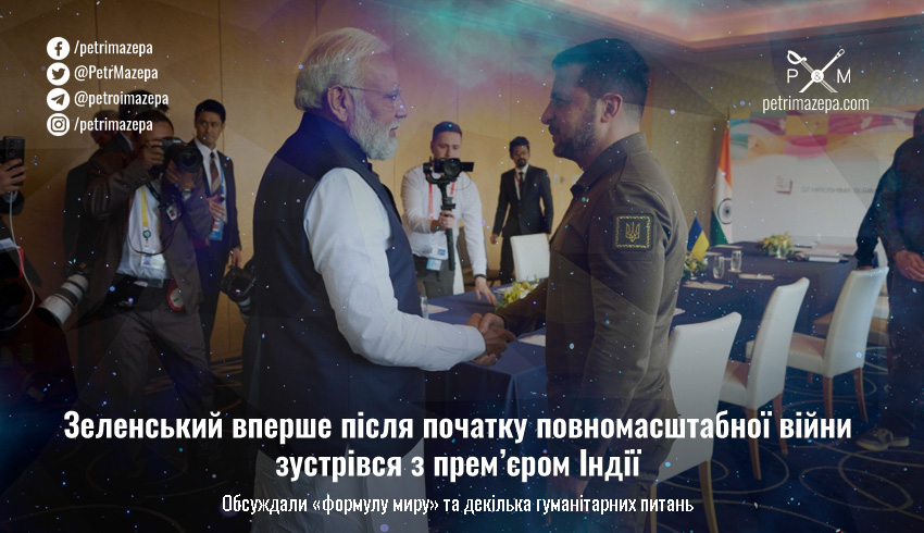 Президент України Володимир Зеленський вперше з початку повномасштабної війни зустрівся з прем’єр-міністром Індії Нарендрою Моді. Президент подякував Індії за підтримку й запросив її приєднатись до української формули миру.
