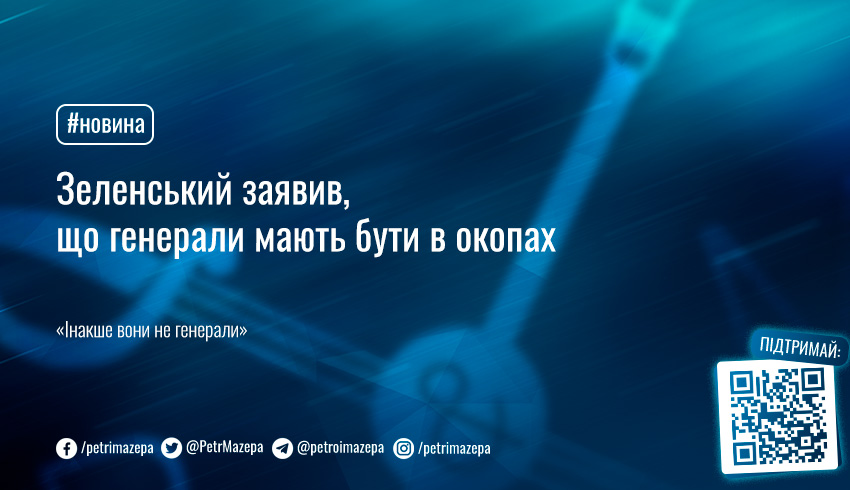 Президент Володимир Зеленський заявив, що українські генерали мають бути в окопах, інакше вони не генерали.