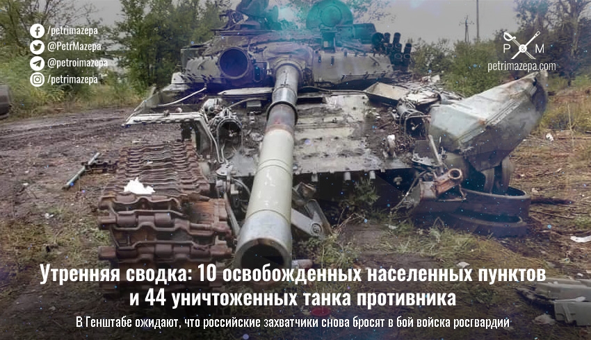 Утренняя сводка: 10 освобожденных населенных пунктов и 44 уничтоженных танка противника
