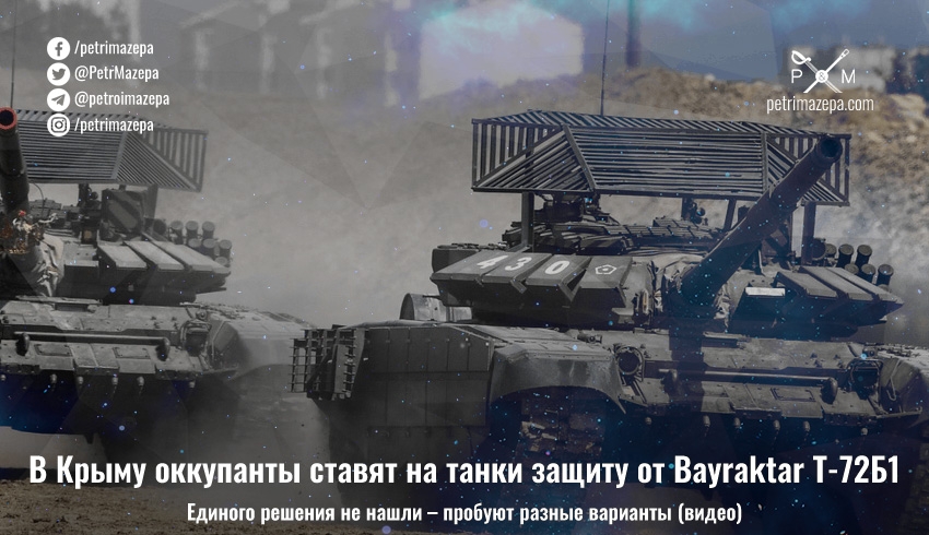 В Крыму оккупанты ставят на танки защиту от Bayraktar Т-72Б1
