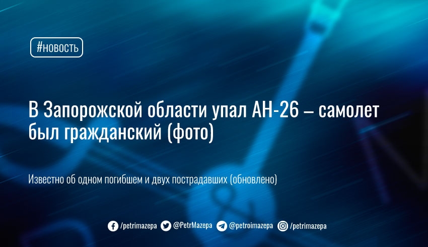 Упавший в Запорожской области АН-26 был гражданским, и не имел никакого отношения к Вооруженным силам Украины. Версии касательно причин его падения озвучили и в ОВА, и в «Слуге народа», но достоверно причина крушения еще не установлена.