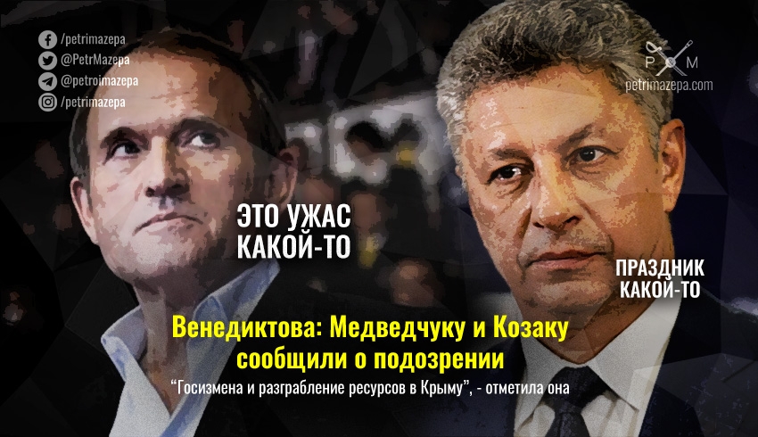 «Сегодня, по результатам проведенной работы, Медведчуку и Козаку сообщено о подозрении в совершении государственной измены и покушения на разграбление национальных ресурсов на временно оккупированной территории Крыма», - сказала она.