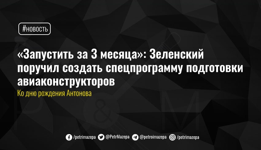 Президент Владимир Зеленский поручил создать и в течение трех месяцев запустить спецпрограмму подготовки инженеров-конструкторов, которую планируется назвать именем конструктора Олега Антонова.